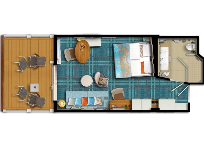 | VEPO - Kajuta s terasou Premium 17 m² + balkón 30 m² s ležadlami a hojdacou sieťou. 7-11. paluba. Max 3 osoby. | 3 058 € 3 058 € za osobu |